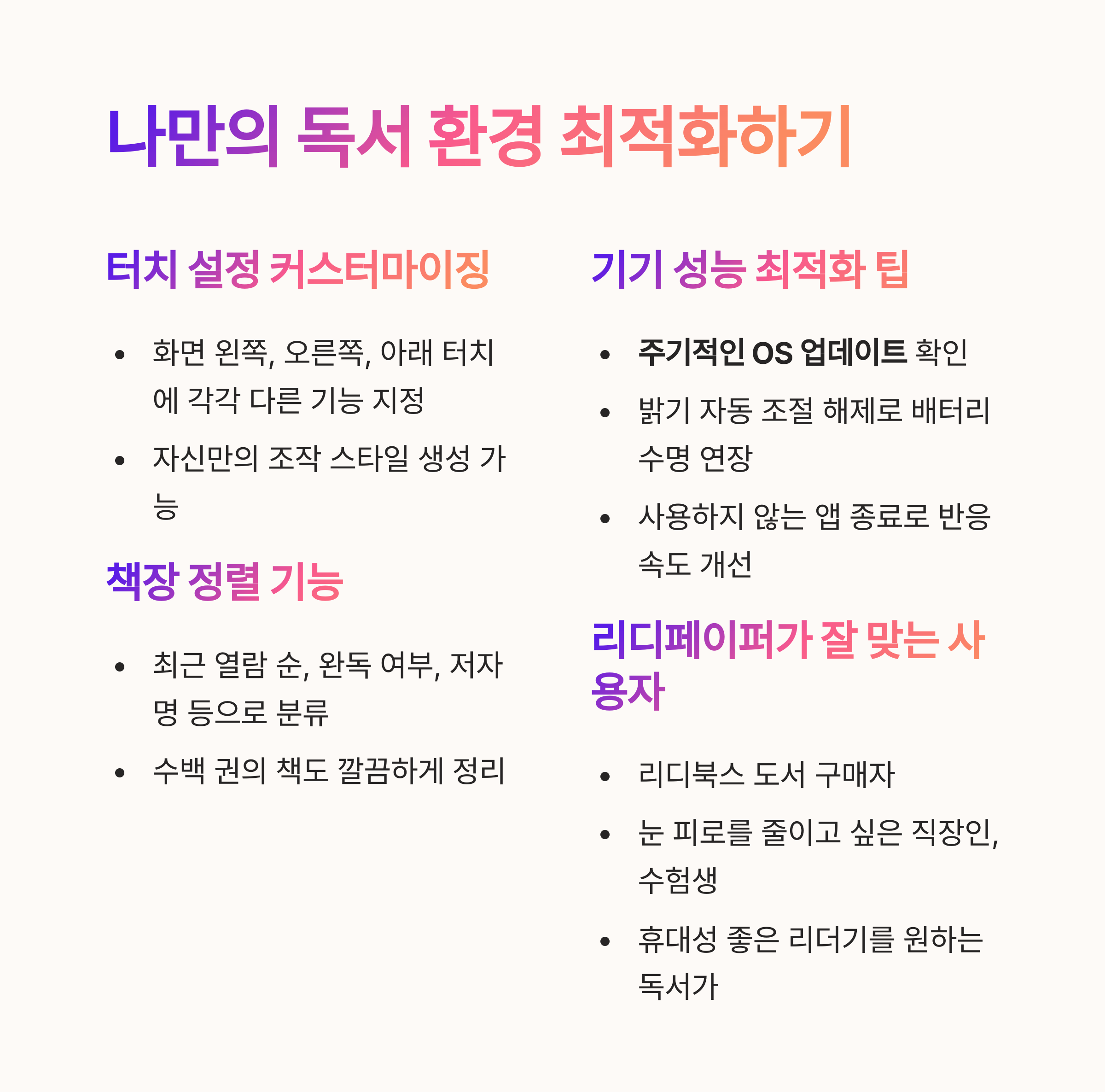 전자책 리더기 중에서도 리디페이퍼는 한국 사용자에게 최적화된 기기로 손꼽힙니다.
