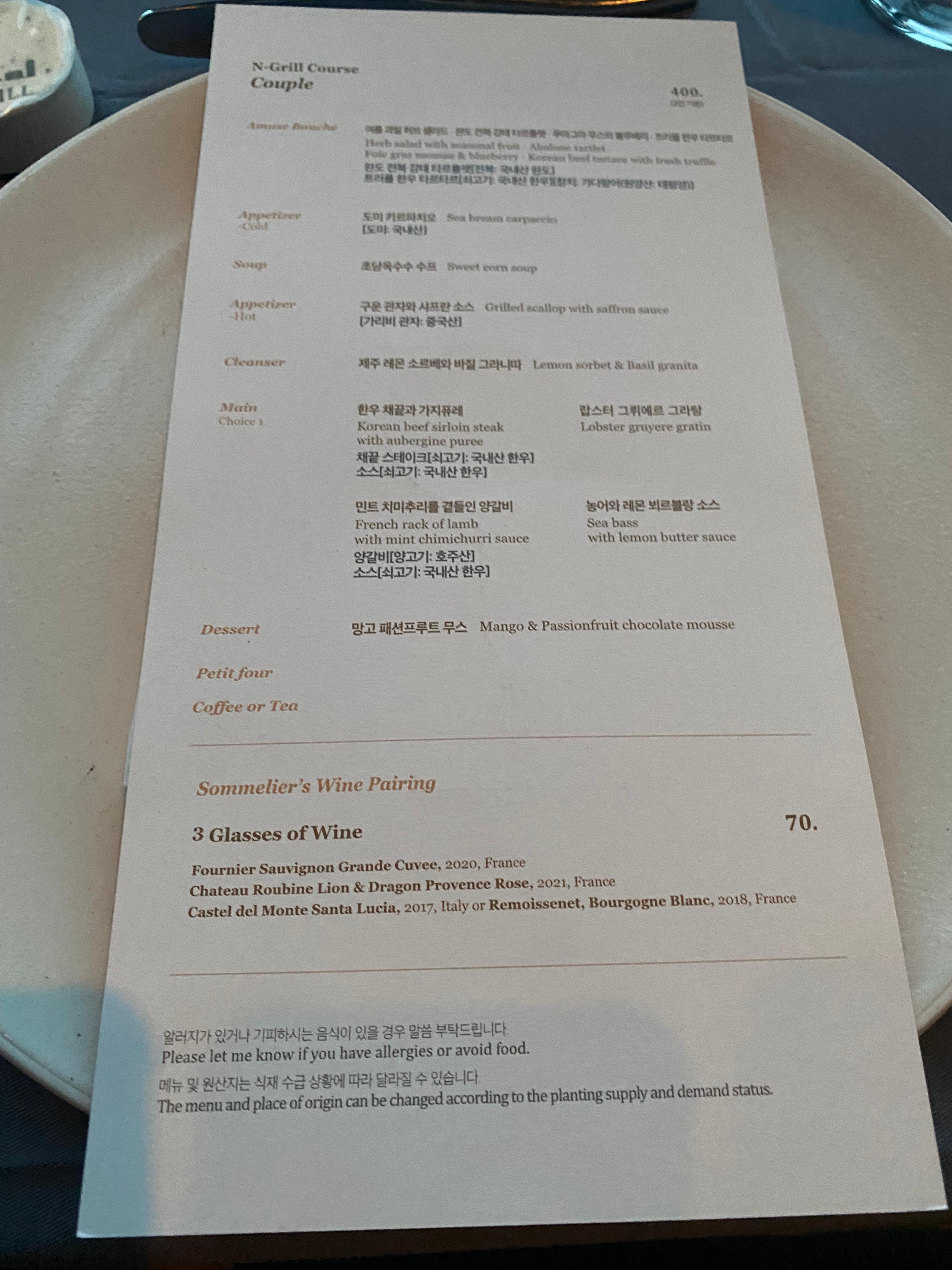 그럼 내돈내산 '엔 그릴 커플코스 후기 남겨볼게요.